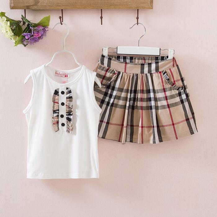 Girls summer suit Korean style sleeveless grid skirt set