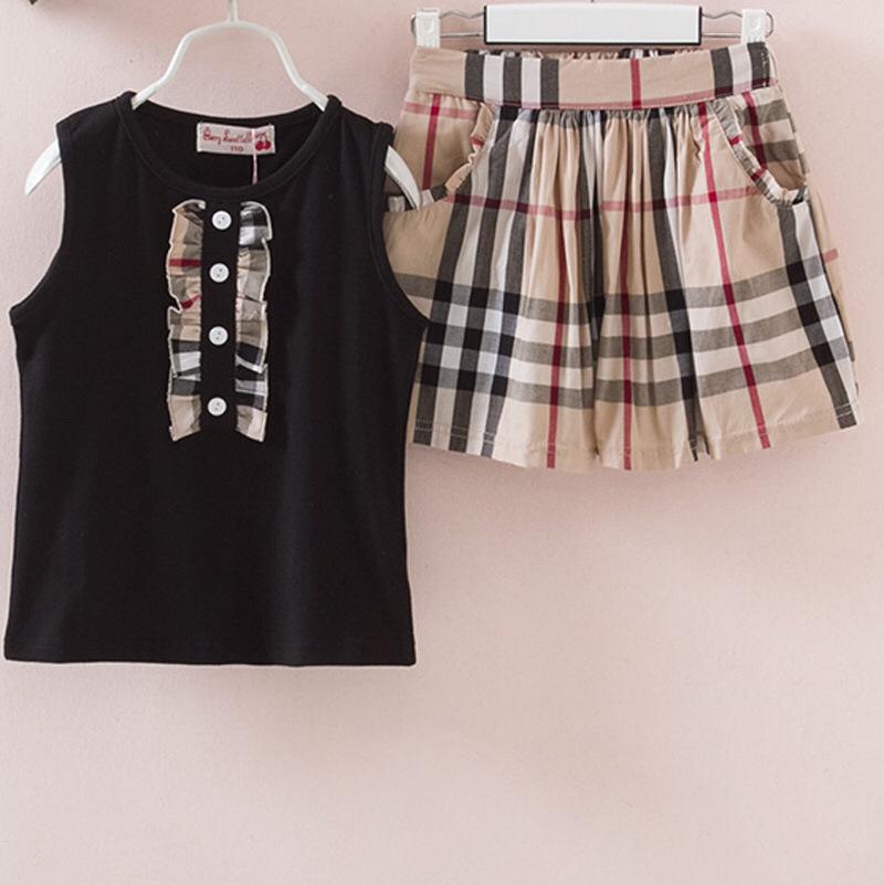 • Description: Girls summer suit Korean style sleeveless grid skirt set for girls