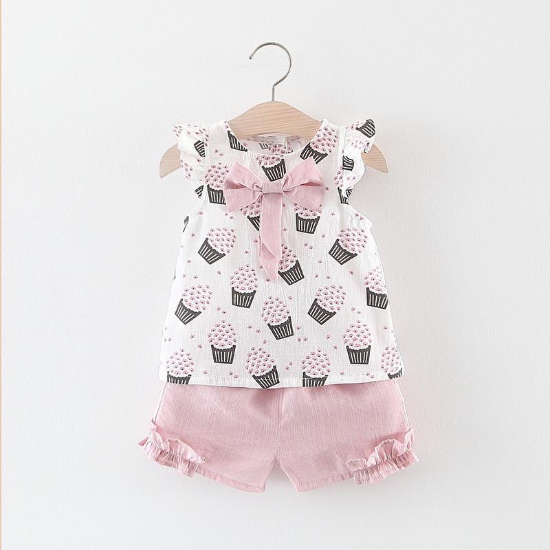 Popcorn printed cute t-shirt with stylish short two-piece set for girls