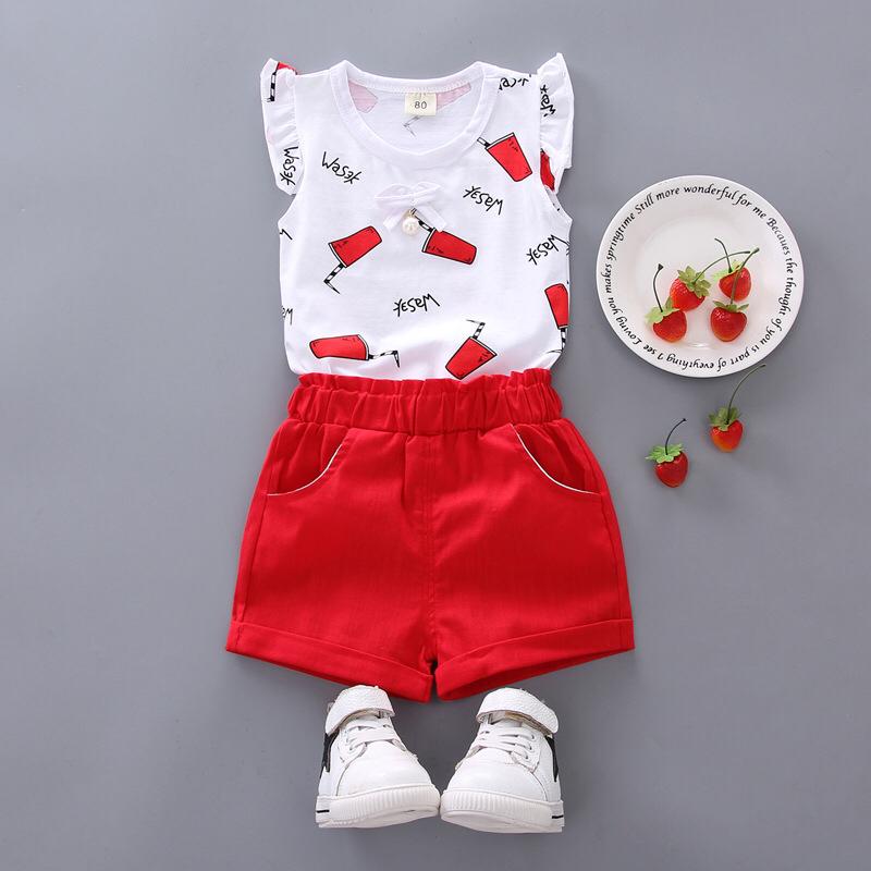 Glass printed sleeveless cotton top with short summer set for girls