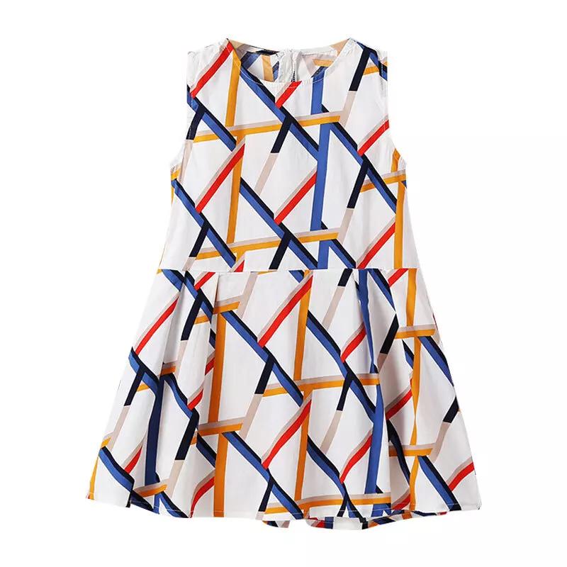 Geometric figure printed new style cotton sleeveless frock for girls