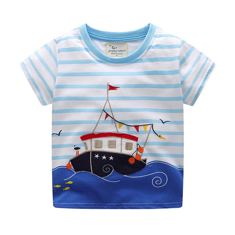 Ship sailing in the sea printed stripped cotton t-shirt for boys