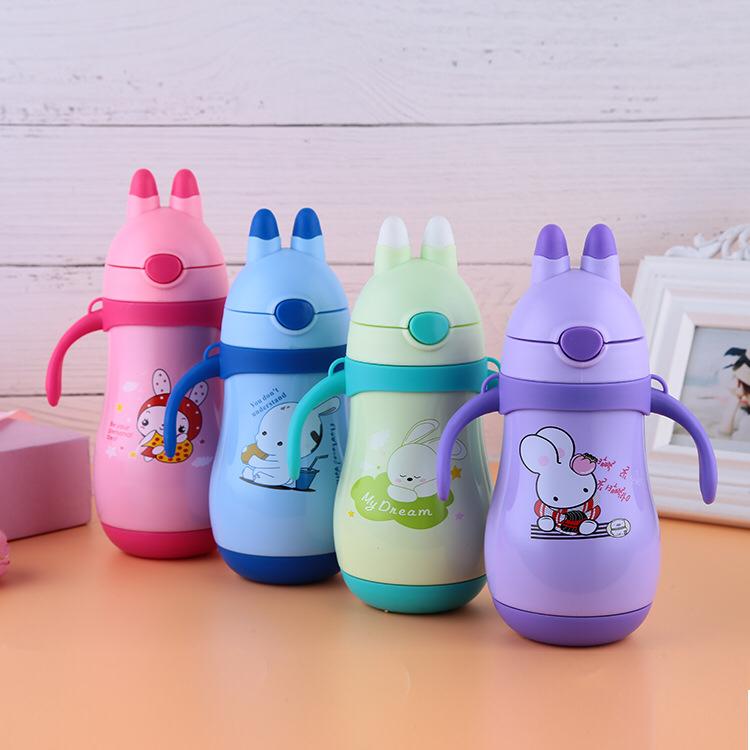 Cute rabbit flask water bottle with belt & handle easy use bottle for children