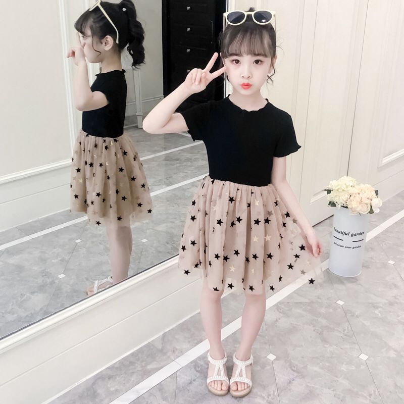 Kids Dresses for Girl Cotton Star Sequins Casual Summer Dress /Collar O neck