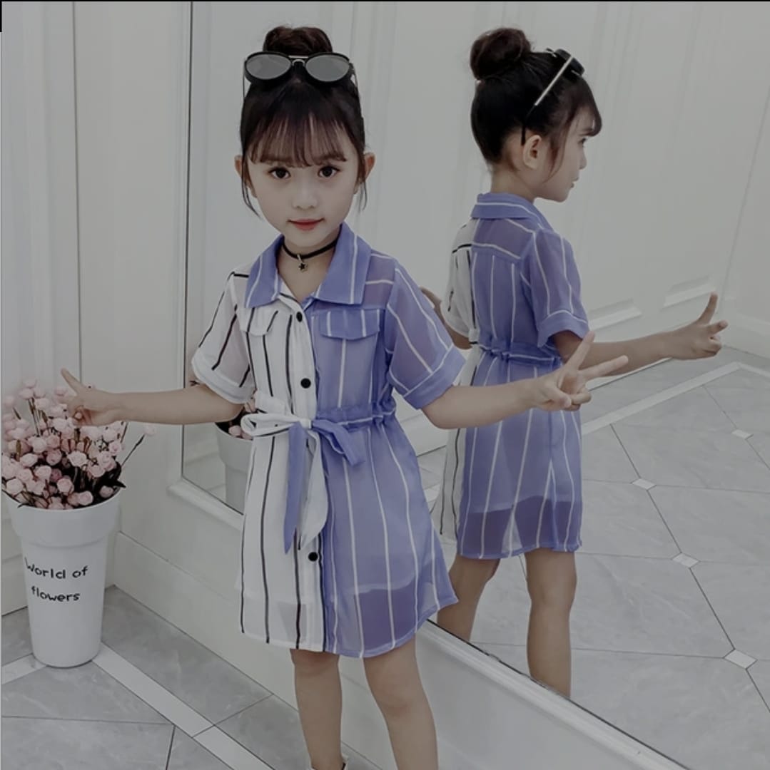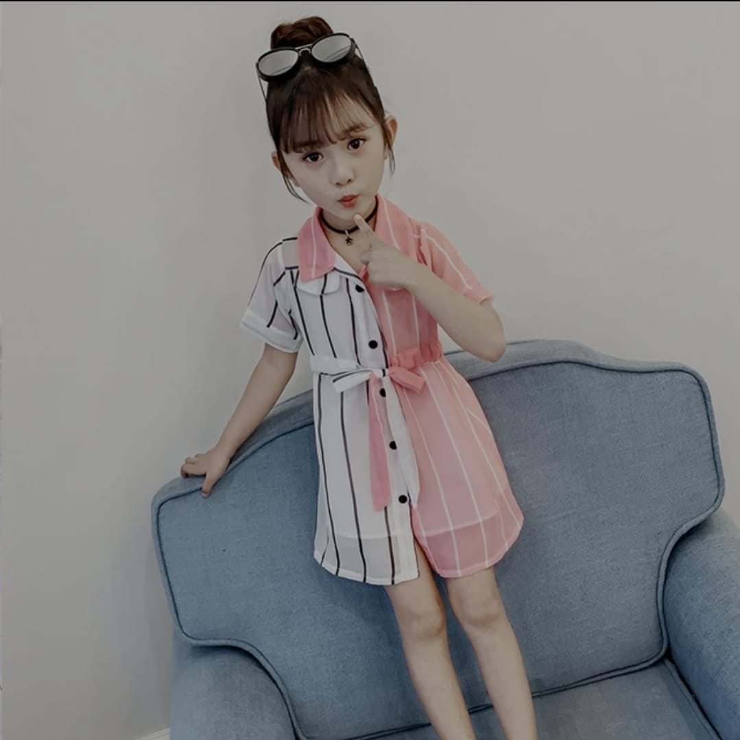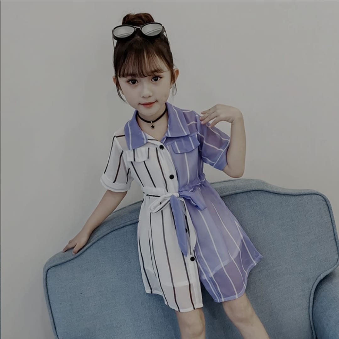 Girls Dress Summer Elegant Kids Short Sleeve Striped Patchwork Shirt Dresses Children Girls Blouse