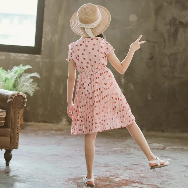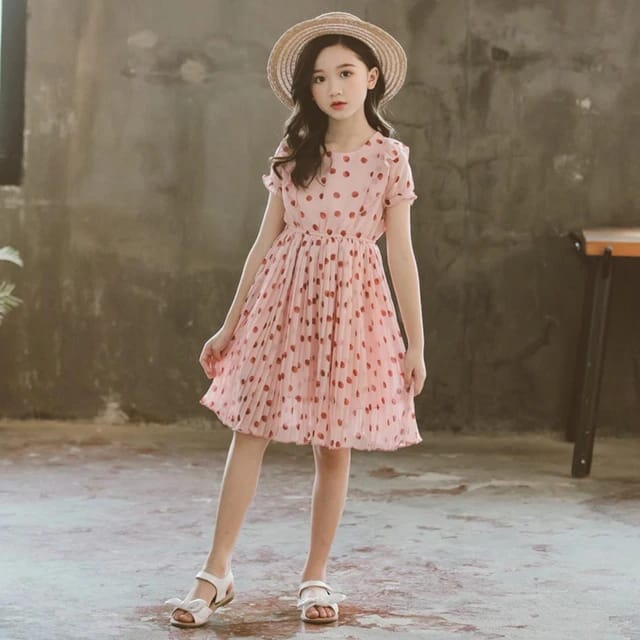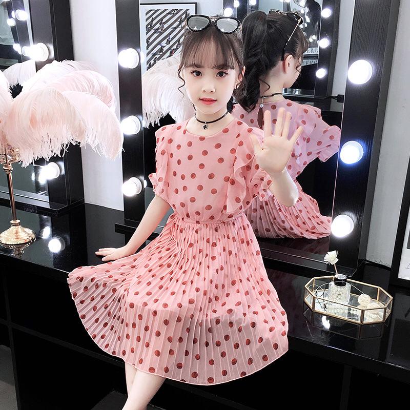 New Girl Dress Fashion Dot Kids Dresses For Girls Ruffle Pleated Kids Dress