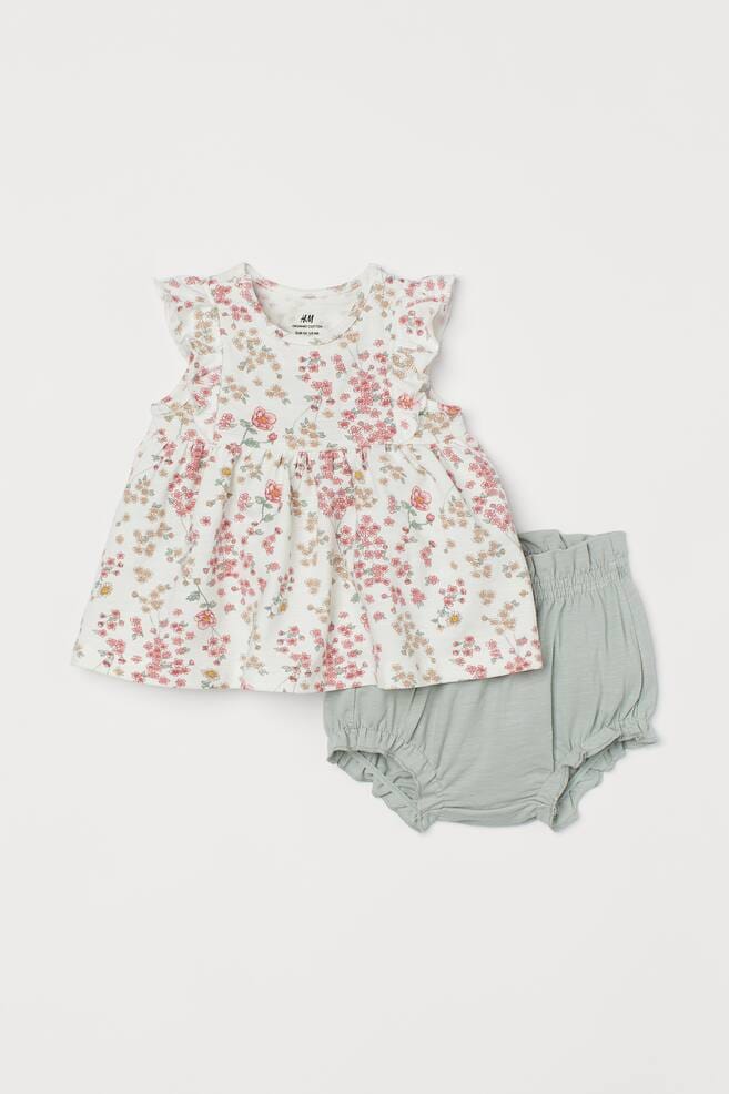 2-Piece Cotton Set - Short Sleeve - White/Floral