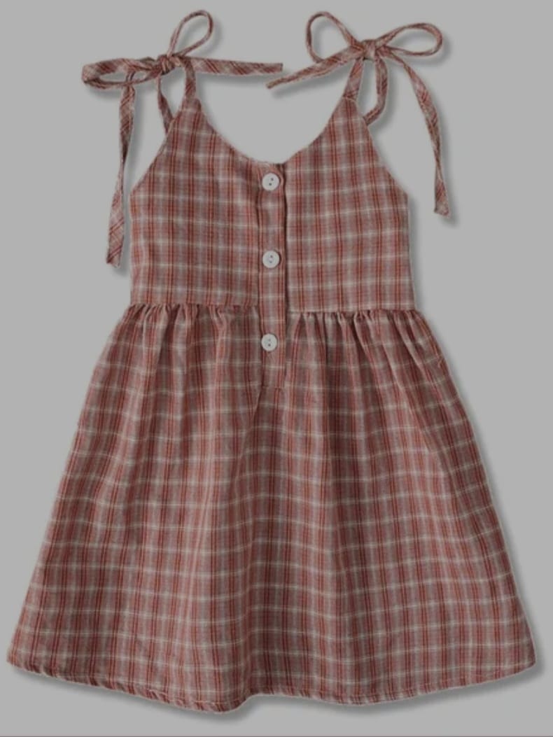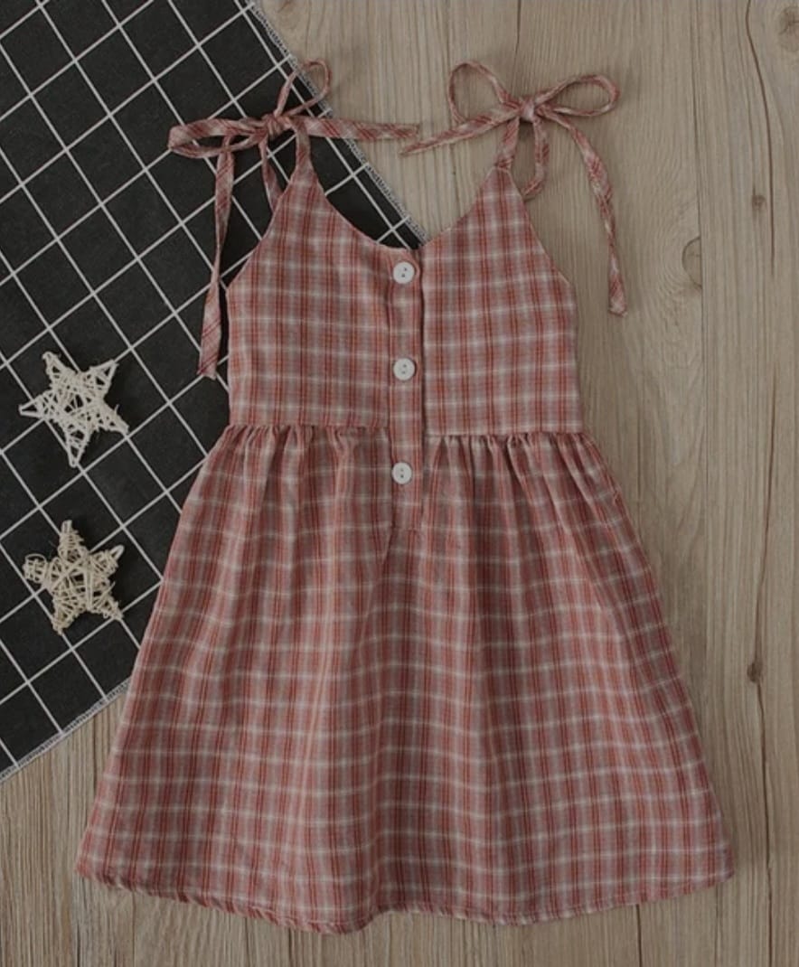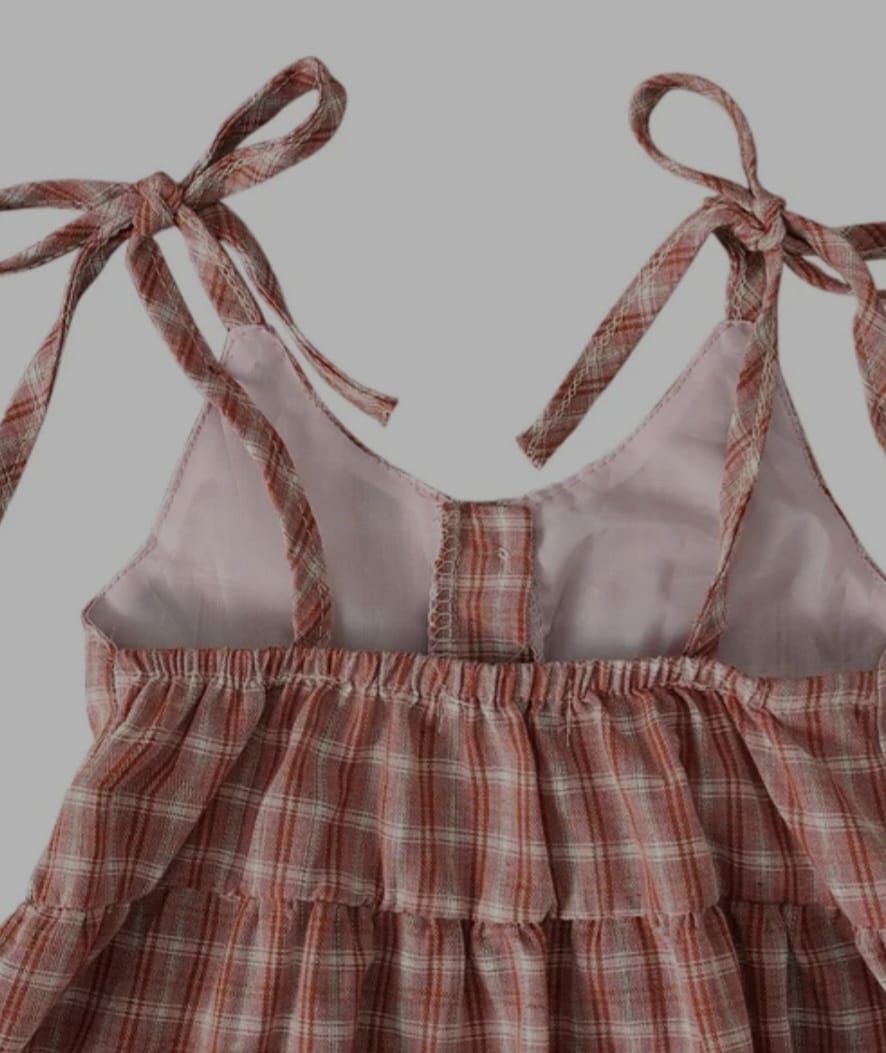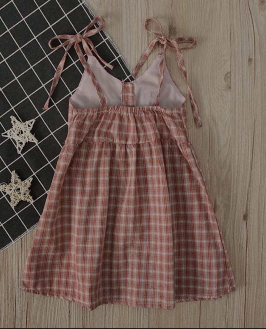 Baby Kids Girls Nude Pink Plaid Spaghetti Straps Backless Dress Clothes