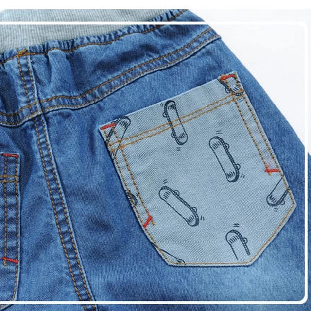 New Summer Boys Jeans Denim Shorts 50% Length Blue Cotton Boys Jeans Children Elastic Waist Kids Shorts Boys
